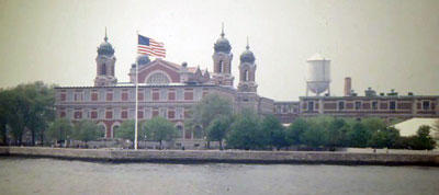 Ovan, Immigrantstationen Ellis Island från sjösidan. Fotograf Peter Johnson, NYC. Fotot visas med tillstånd av Peter Johnson.