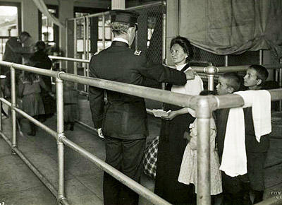 Immigrationskontrollen på Ellis Island tog allt från 2 till 5 timmar. Immigrantpersonalen använde ett stort antal tolkar för olika språk som hjälpte till med intervjuerna. Immigranterna fick svara på ett stort antal frågor och bland annat uppge namn, yrke och hur mycket pengar de hade med sig. Det sistnämnda var viktigt för Amerikanska staten då det var av betydelse att de nyanlända kunde försörja sig själva och hade tillräckligt med pengar för att komma igång i det nya landet. Helst ville man att de skulle ha mellan 18 och 25 dollar med sig. De som hade uppenbara hälsoproblem eller sjukdomar sändes tillbaka hem eller lades in på Ellis Islands sjukhus. Totalt avled cirka 3 000 anlända på sjukhuset under de år det var i bruk. Okvalificerade arbetare kunde vägras inträde till USA eftersom de ansågs kunna bli en börda för staten. Dömda brottslingar släpptes heller inte in i landet. Totalt vägrades cirka 2% av de anlända immigranterna tillträde till USA och skickades tillbaka till varifrån de kom.Inga oceangående ångfartyg lade till vid Ellis Island. Det var de för stora för. Immigranterna kördes istället med mindre fartyg/färjor från de stora immigrantfartygen till Ellis Island.Det var inte vanligt att förstaklass-passagerarna, och knappast heller andraklass-passagerarna, slussades till Ellis Island från passagerarfartygen utan det var främst tredjeklass-passagerarna. Det var i första hand de som skulle hälsokontrolleras och visa att de hade tillräckligt med pengar för att klara sig den första tiden.