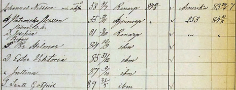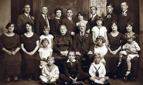 På sidan om manifesten har vi sett Johannes Nilsson som emigrerade 1881 från Skåne till USA. Vi har även sett hans son Per Hilmer Johansson i manifesten på den sidan liksom på sidan om emigrantbiljetterna. Per Hilmer emigrerade till USA 1904 och var hemma på ett besök i Sverige 1910. Nedan är en bild på Johannes Nilsson familj. Bilen är tagen i Brooklyn, New York City, 1924 då Johannes Nilsson och hans hustru Petronella var över och hälsade på barnen i USA.I mitten sitter Johannes Nilsson och hans hustru Petronella omgivna av barn och barnbarn.Johannes och Petronella hade 6 barn: 2 söner och 4 döttrar. Ytterligare 2 barn dog som unga. Sönernas efternamn och döttrarnas flicknamn är Johnson (Johansson). Fjärde personen från vänster i bakre raden är sonen Per Hilmer Johansson (Hilmer Johnson). Hans hustru är Katherine Johnson som står till vänster om honom. Fotot visas med tillstånd av Peter Johnson, son till Hilmer och Katherine. Peter är född 1929 och alltså ännu inte född när fotot togs1924.