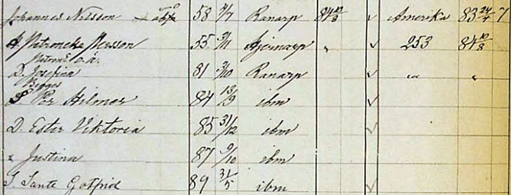 Alla barnen till Johannes och Petronella Nilsson slog sig ned i svenskkvarteren i Brooklyn, New York City (NYC). Sante flyttade 1916 till Florida och Hilmer lämnade NYC före 1917 och slog sig ned norr om NYC i Westchester County där han gifte sig med sin hustru, Katherine Candi. Några år senare flyttade Hilmer med hustru till Bronx i NYC.Övriga syskon blev kvar i Brooklyn. De flesta av syskonen Johnson gifte sig med landsmän. Klaras man var dock från Norge och Hilmers hustru var amerikanska.Johannes Nilsson hade en äldre bror, Carl-Magnus Nilsson (1856-1899), och hans ättlingar bor än i dag i Förslövsområdet på Bjärehalvön.