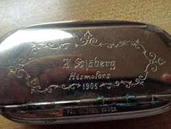 Sante och Elin Johnson i släkten Johansson ovan fick en dotter Irene Sophia (1916 - 2001). Hon gifte sig med Willard John Carlson (1916 - 1998) och paret fick dottern Sonja Irene (Carlson) Thomas. Sonja äger en liten dosa av metall, cirka 7 cm bred. Dosan har en inskription på locket “J. Sjöberg, Hismofors, 1905”. Denna dosa är en svensk snusdosa. Bilden till vänster visar snusdosan. Förr såldes snus på lösvikt. Därför var det tidigare vanligt att brukarna av snus hade speciella snusdosor där snuset förvarades och dosorna fylldes på av försäljaren på försäljningsstället. En snusdosa är helt enkelt en behållare för snus och var förr vanligen tillverkad av trä, näver, silver, nysilver, horn mm. De var ofta även graverade.Inskriptionen på locket lyder “J. Sjöberg, Hismofors, 1905”. Intill gångjärnen finns ytterligare en inskription “Pål Olsson, Wånga”.Snusdosan ägs idag av Sonja Thomas i Orlando, Florida, och den kom till USA med släktingar på hennes farmors sida, släkten Sjöberg, när de emigrerade till Nordamerika.Bilden visas med tillstånd av Sonja Thomas.Läs hela historien om snusdosan och släkten Sjöberg.