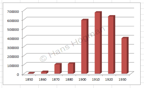 Antal svenskfödda i USA med 10-års perioder under invandringsepoken