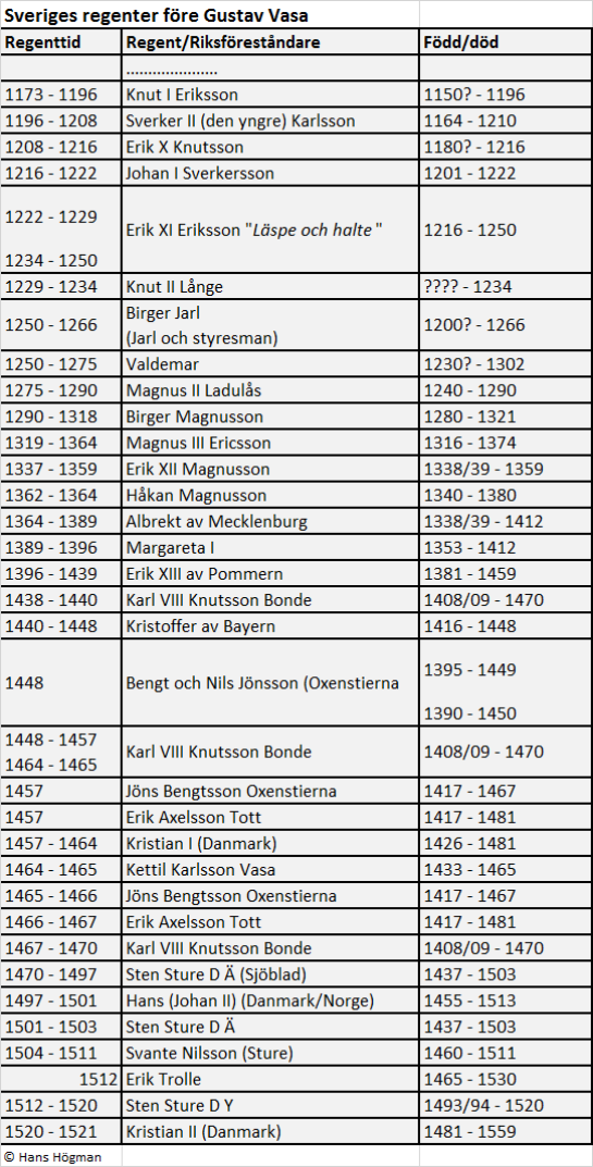 Regenter före Gustav Vasa