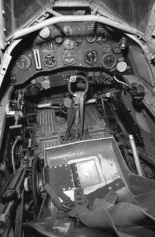 Interiör av förarplatsen i en Gloster Gladiator J 8. Bild: Wikipedia.