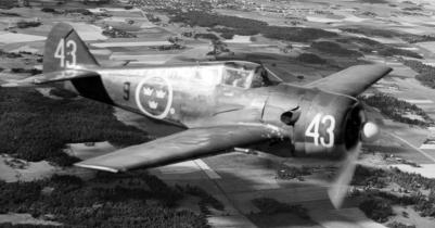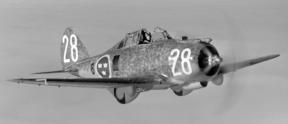 I och med 1936 års försvarsbeslut sker en upprustning av flygvapnet som bland annat innebar en snabb utbyggnad av jaktflyget. Det jaktflygplan som flygvapnet hade då var det föråldrade biplanet Gloster Gladiator J 8 som fanns på jaktflottiljen F 8 i Barkaby. Flygvapnet behövde ett modernt jaktflygplan och en möjlighet öppnade sig att köpa Seversky P-35 från USA. Bilden visar ett jaktflygplan J 9 märkt 28 från F 8 Barkarby. Bild: Flygvapenmuseum, ID: FVMF.002951. Seversky P-35 var ett amerikanskt jaktflygplan av lågvingad monoplanstyp, konstruerat 1935 och dess första flygning skedde i augusti samma år. Flygplanet gjorde tjänst i Svenska flygvapnet som J 9 och B 6 (2 st). Mellan 1940 och 1952 ingick Seversky P-35A i Flygvapnet. Sammanlagt beställdes 120 flygplan i tre omgångar. Första ordern om 15 flygplan tecknades i juni 1939 vilken följdes av en order om 45 flygplan den i oktober samma år. Slutligen tecknades en sista order om ytterligare 60 flygplan i januari 1940. Den svenska versionen kallades Seversky EP-1 Model 106 med svenska beteckningen J 9. Av de totalt 120 beställda flygplanen erhöll Flygvapnet enbart 60 flygplan beroende på det snabbt införda amerikanska vapenembargot med hänsyn till kriget i Europa. Efter monteringen av de till Sverige levererade flygplanen placerades de på F 8 Barkarby. År 1946 avfördes flygplanet som huvudtyp och kom istället att användas på olika flottiljer för allmän flygträning och sambandsflygning. Fakta: Längd 8,18 meter Spännvidd 10,98 meter Höjd 2,98 meter Vingyta 20,9 m² Tomvikt 2.120 kg Max. startvikt 3.000 kg Max. flyghöjd 9.150 m Max hastighet 490 - 520 km/h Räckvidd 850 km Stigförmåga 1 0,4 m/s Motor 1 × R-1830-45 (TWC 3), 1.050 hk Beväpning: 2st 8 mm ksp m/22, 2st 13,2 mm akan m/39 Bilder: