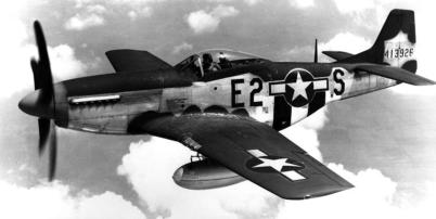 En amerikansk P-51D Mustang över Frankrike under andra världskriget. Bild: Wikipedia.